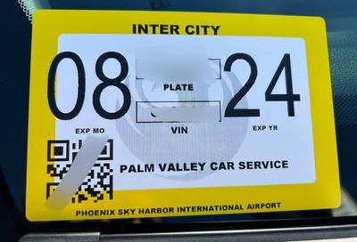 A SHADY & ILLEGAL TRANSPORTATION PROVIDER WON’T HAVE THIS DECAL IN THEIR FRONT PASSENGER WINDOW. CHECK THE VEHICLE FOR THIS DECAL TO MAKE SURE YOU ARE USING A LEGAL COMPANY WHO IS ALLOWED TO PICKUP/DROP OFF AT PHX SKY HARBOR AIRPORT. VEHICLES NOT DISPLAYING AN APPROPRIATE DECAL WILL NOT BE AUTHORIZED TO OPERATE ON THE AIRPORT PROPERTY. ALSO THIS DECAL ENABLES US TO PICK YOU UP AT THE PRE-ARRANGED PICKUP AREA AT THE OUTER CURB AT THE AIRPORT. **WE ALSO PAY A MONTHLY BILL FROM PHX SKY HARBOR AIRPORT FOR EACH PICKUP AND DROP OFF. THAT MIGHT BE ANOTHER REASON A SHADY SERVICE WOULDN'T HAVE THIS STICKER.** WE CARE ABOUT OUR CLIENT'S SAFETY & ARE PROUD TO BE A LEGAL, STRESS- FREE, SAFE & PROFESSIONAL AIRPORT TRANSPORTATION SERVICE FOR OVER 20 YEARS!