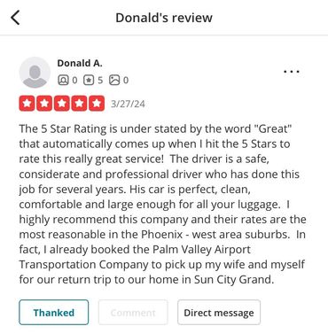 Drivers are background checked & fingerprinted by Phoenix Sky Harbor International Airport
