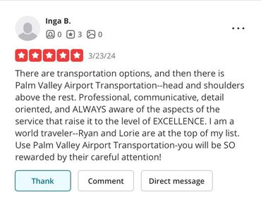 Palm Valley Airport Transportation driver will carry all your luggage to/from the vehicle and to the door of your residence.